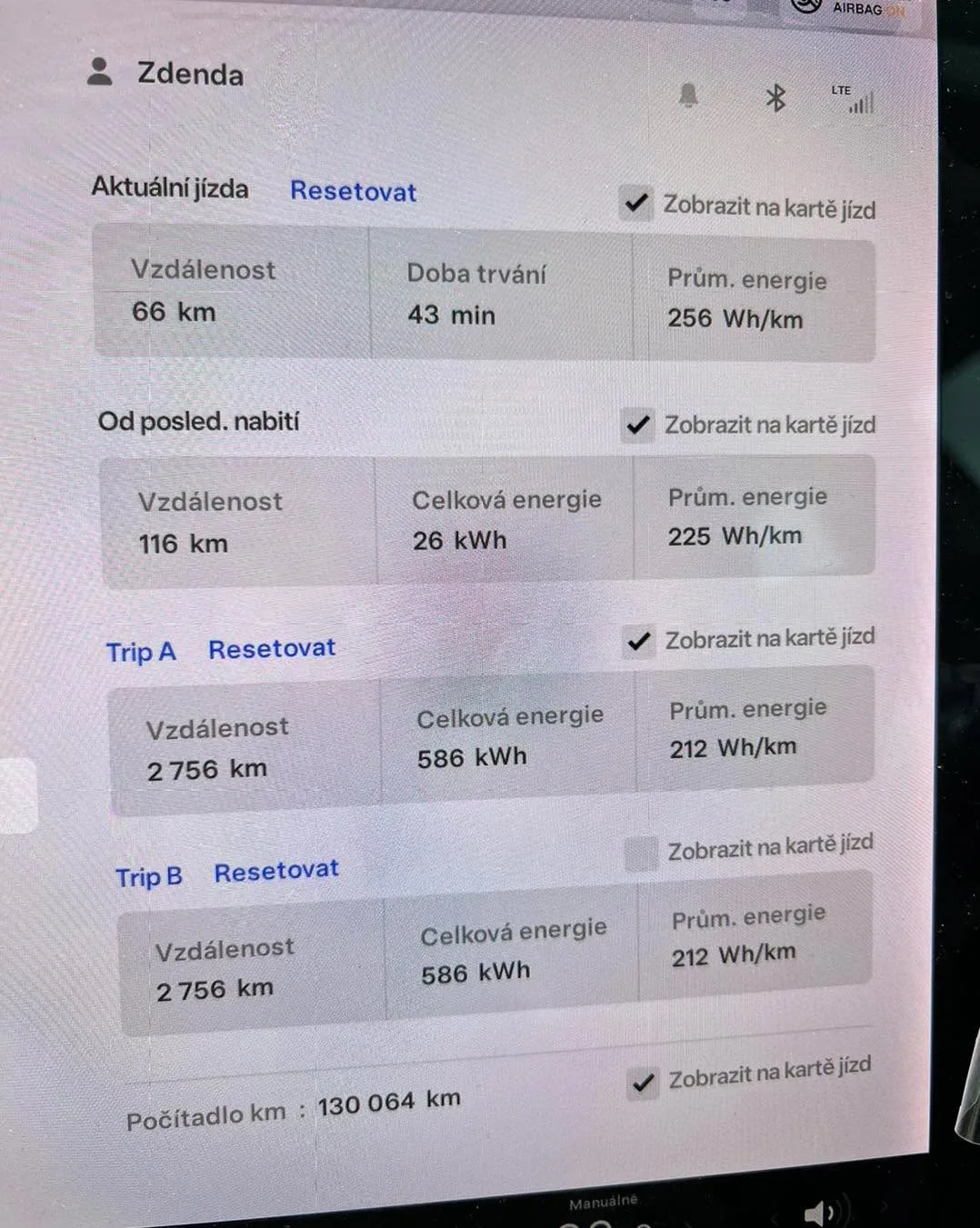 - Dalsi den jsme jeli jine trasy a on se připojil za Reného - pry jeli jeste klidneji a poslal pak ten dalsi screen se spotřebou 17,3kWh. My jeli do vnitrozemí a spotřebu meli cca 235kWh.