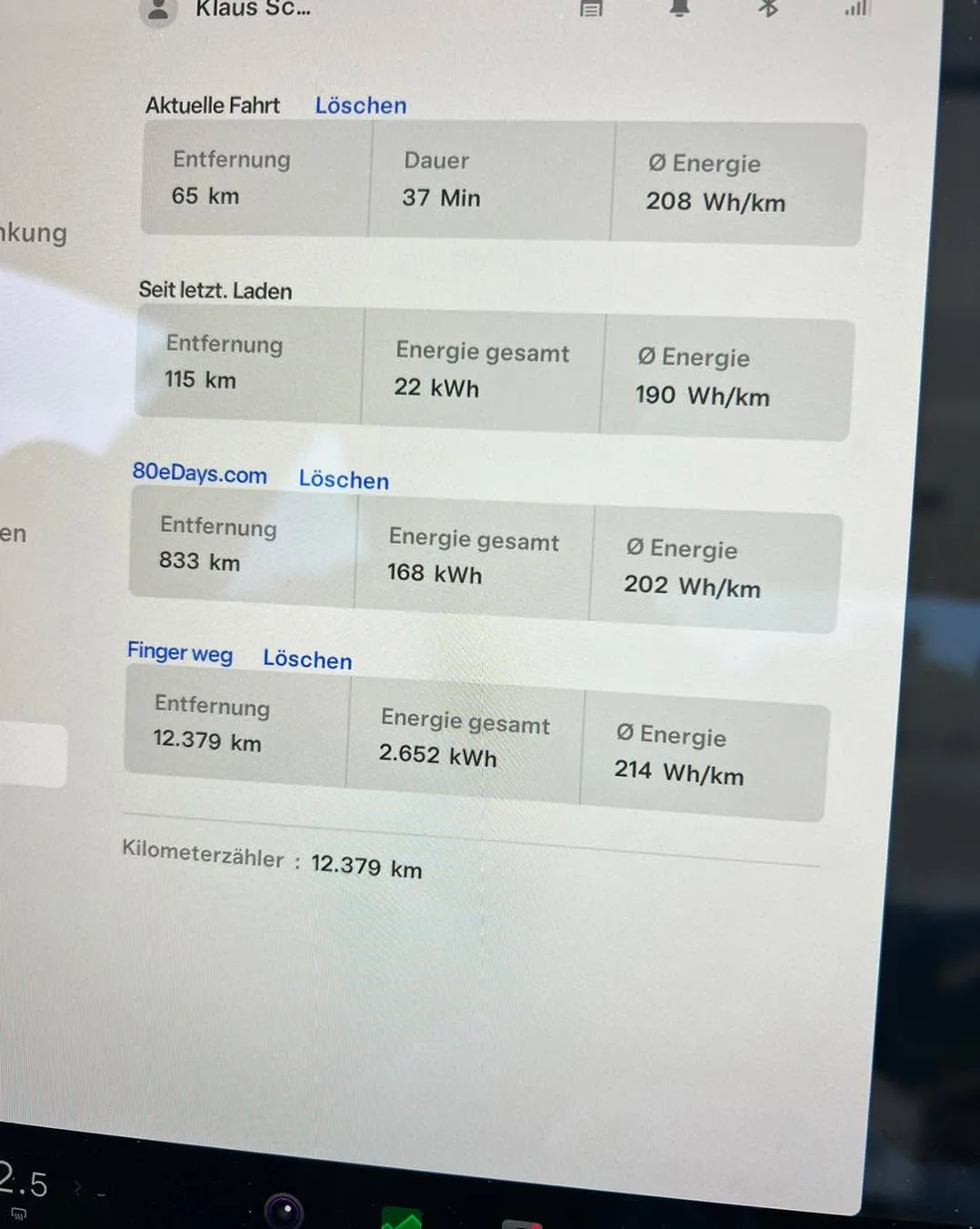 - Klaus v novém modelu S je typický Němec, takze jel jeden úsek mezi nabijenim naprosto totožně jako my.