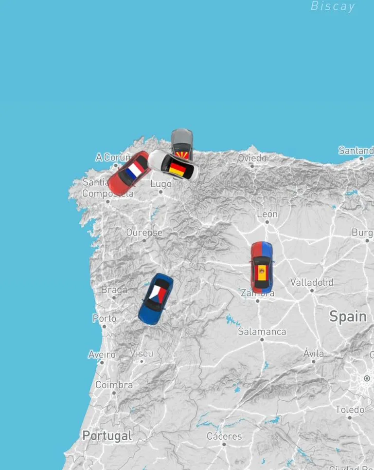 Takhle se nahání pár Tesel po pyrenejském poloostrově.. Tím chceme rict, ze uz snad funguje tracking nasi cesty a prubezne je to mozne sledovat on-line zde: https://track.80edays.com