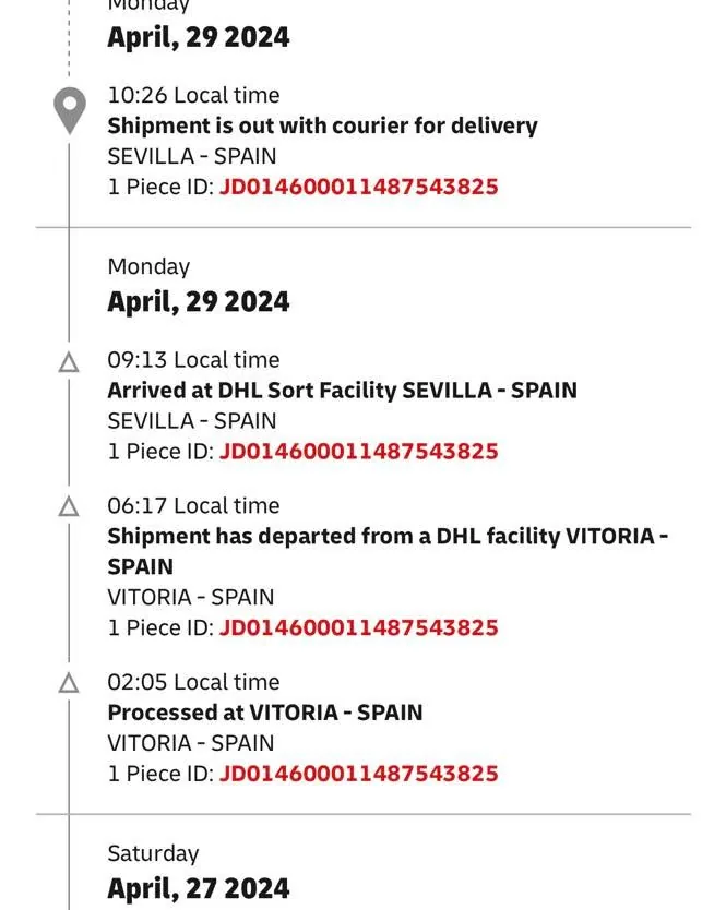 Uff!!😶🌫️😶🌫️😶🌫️ Bohužel jsme nevěděli, že musime mit kvuli budoucím transportum od auta original vsech dokumentů včetně velkého TP. Takze od patku jsme to řešili a podarilo se pomoci DHL dostat “papíry” k nam do Sevilly ve Španělsku. Moc děkujeme za proaktivní pristup pana Prokopce z jihlavské pobočky DHL. V podstatě se to podalo 5 minut po, ale prověřil, že vše na pozadi probíhá dobre. Ve Španělsku nam vsichni tvrdili, že to prijde az jeste dalsi den (i to tak ukazoval system, ale zaroven ukazoval, ze uz to ma kuryr). Nakonec bylo vše přesně podle p. Prokopce. Moc dekujeme!🙏🏻🙏🏻🙏🏻