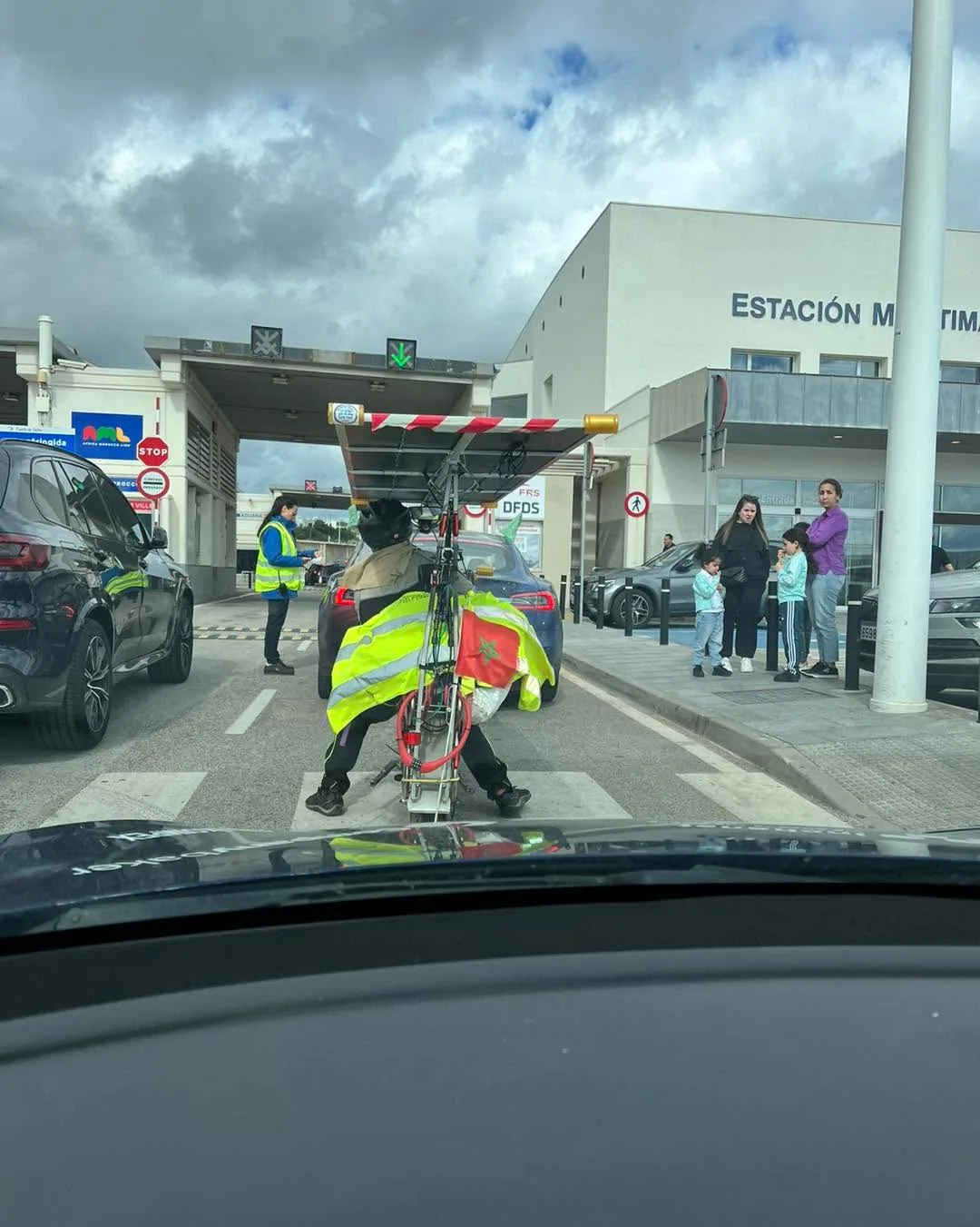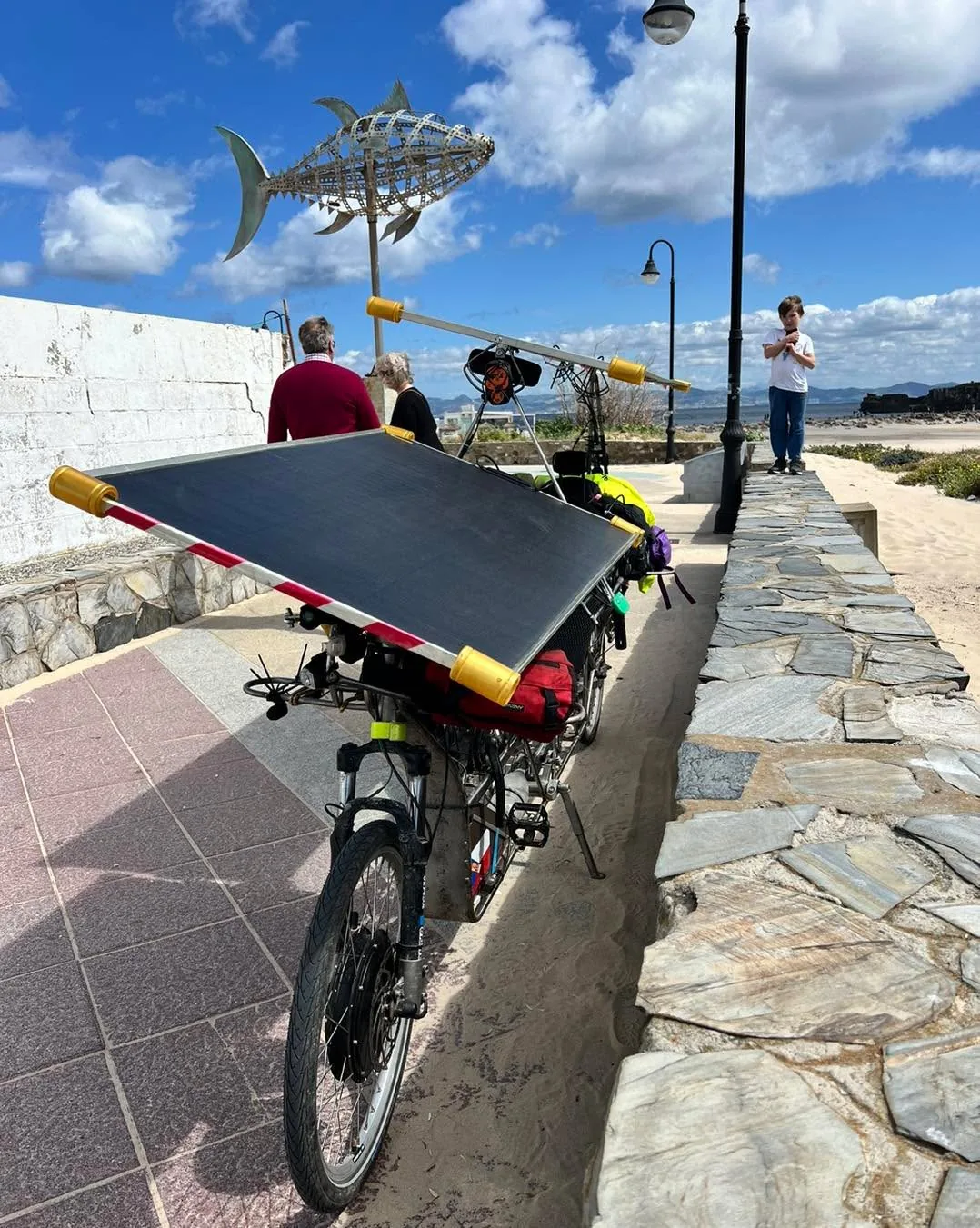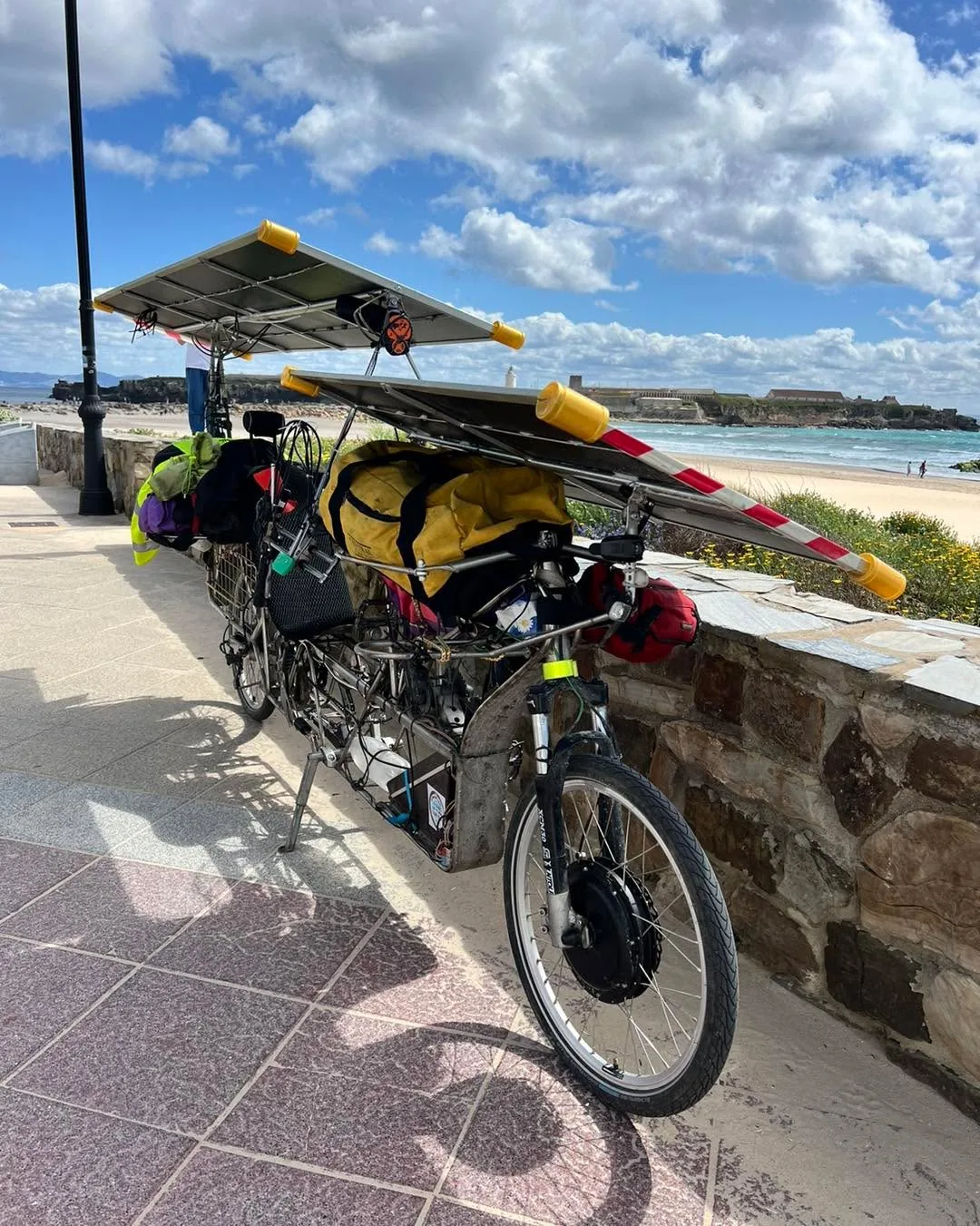 Tohle je Jirka😀 Potkali jsme dalšího dobrodruha, na nejjižnějším cípu Evropy. Tentokrát na solárním kole!😳⚡️ Na chvíli byl součástí naší kolony a společně jsme přepluli do Afriky👍🏻👍🏻.