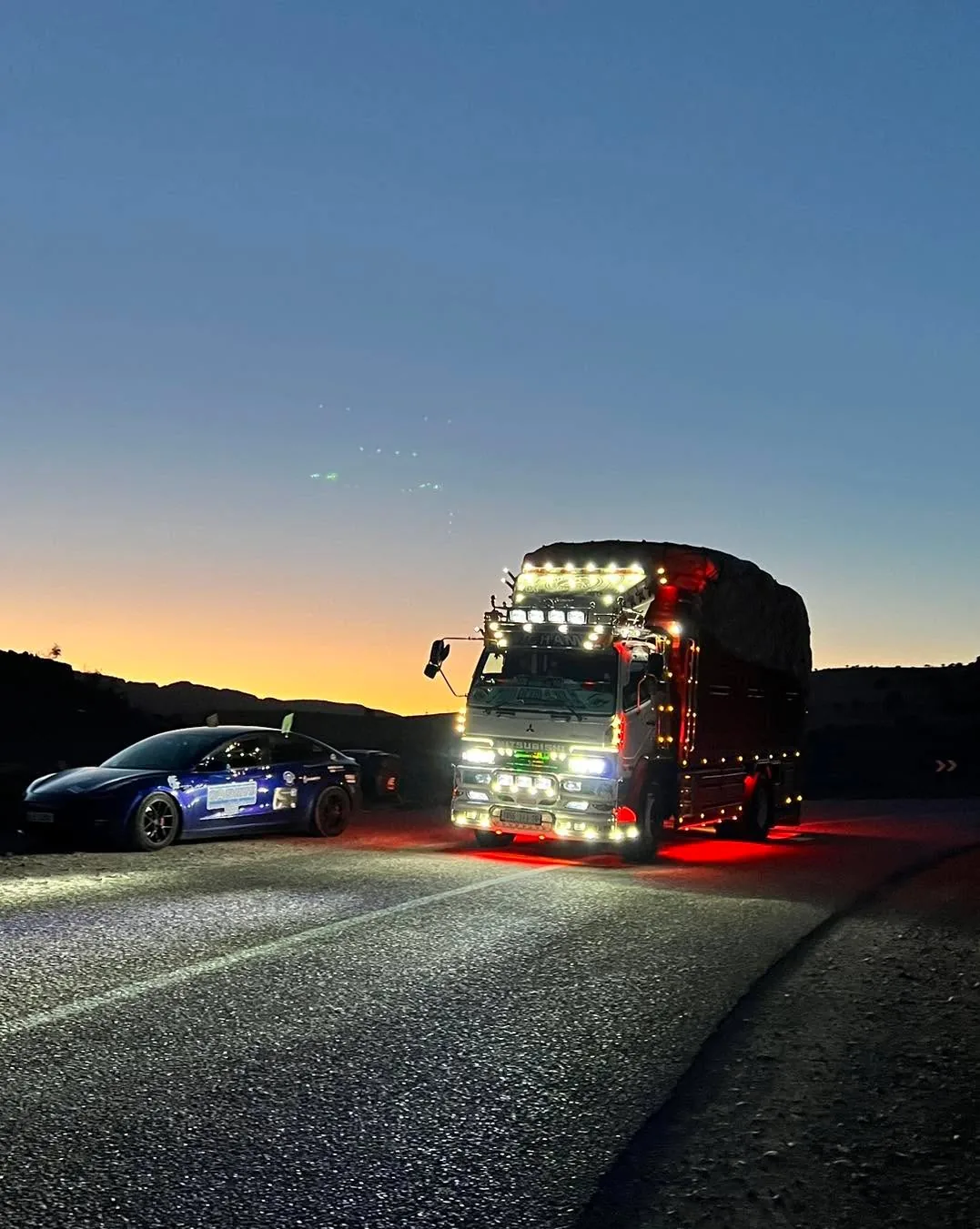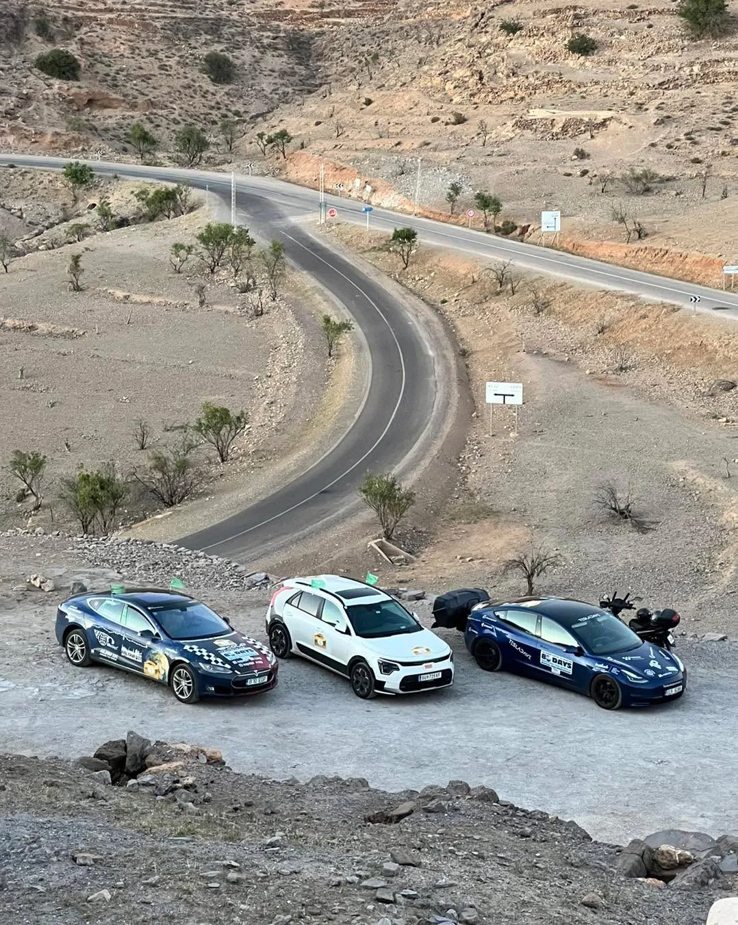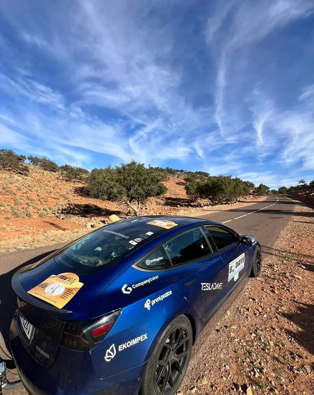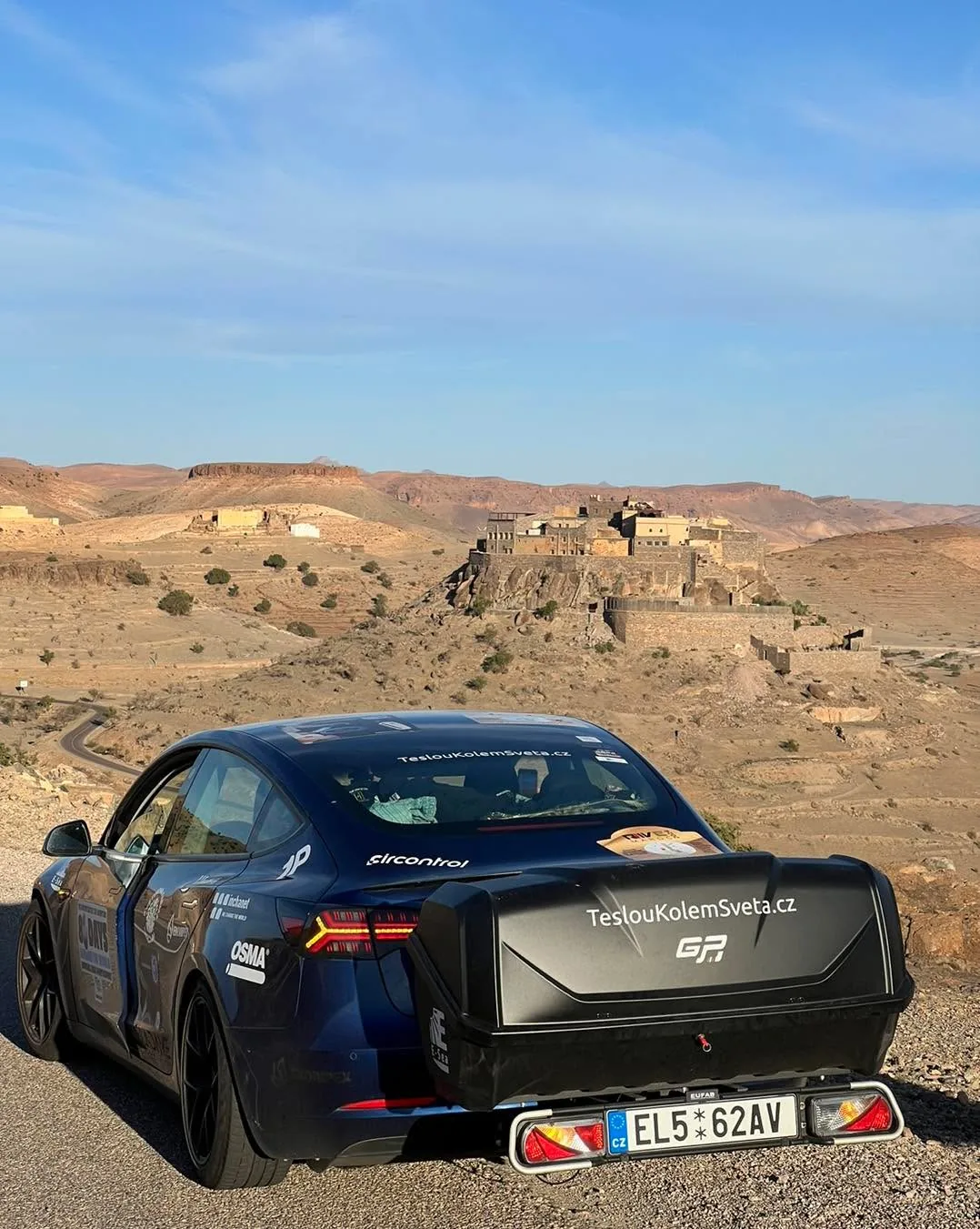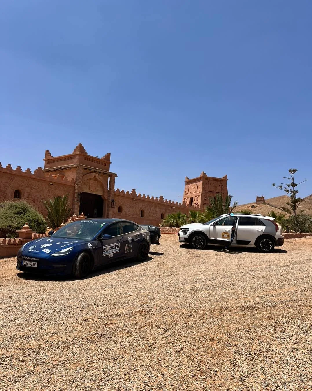 “La petit prince” začíná..😳 Na jihu Maroka jsme od 2.5. součástí týdenní zkušební trasy pro budoucí Ecorallye v Maroku, pořádané RIVE Maroc. Organizátorka Silvia vytipovala místa a trasy, které mame projet a overit tak moznosti pro budoucí účastníky. Začalo se výjezdem z Agadiru (poslední a podle nás nejjižnější Tesla supercharger v Africe). Po cca 100 km jsme se dostali do hor, do nadmořské výšky pres 1.000 m a dojeli k pevnosti Tizourgane, kde jsme meli soukromou prohlídku a večeři se západem slunce. To ticho, výhledy a pevnost ze 13. století působilo úžasně. Nektere výhledy delali dojem, jakoby clovek koukal na obrovske namalovaný plátno kdesi pred pevností🤩. Potom jsme již po tmě dojeli dalsich 50 km do hotelu v Tafrout. Městečko prozkoumame ted rano, pry je zname výrobou bot.