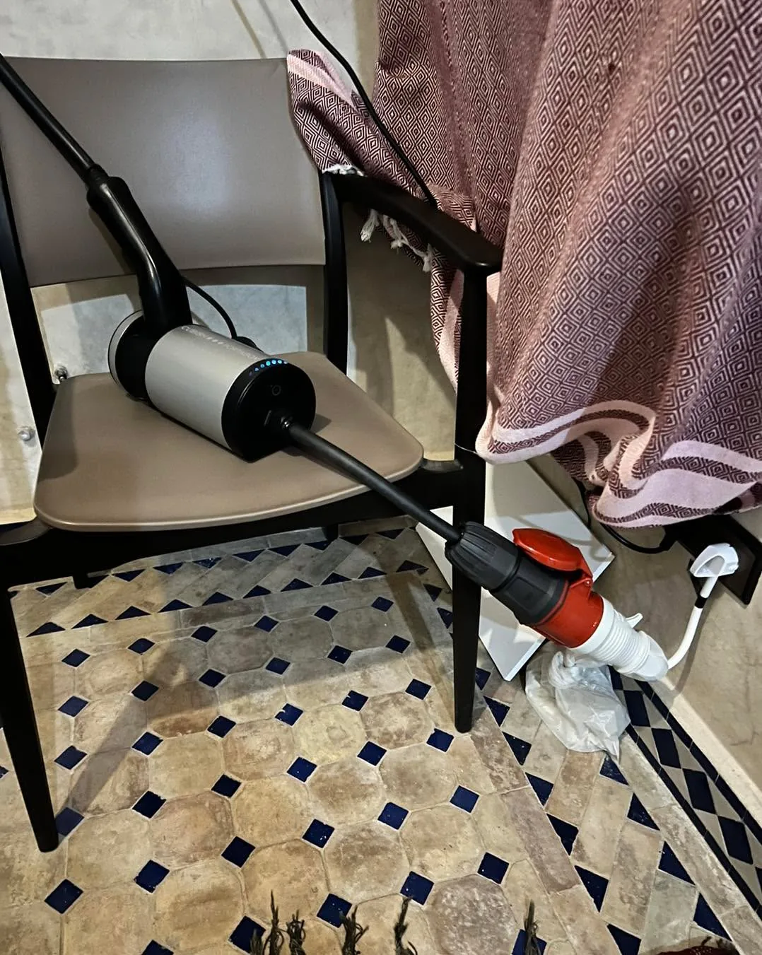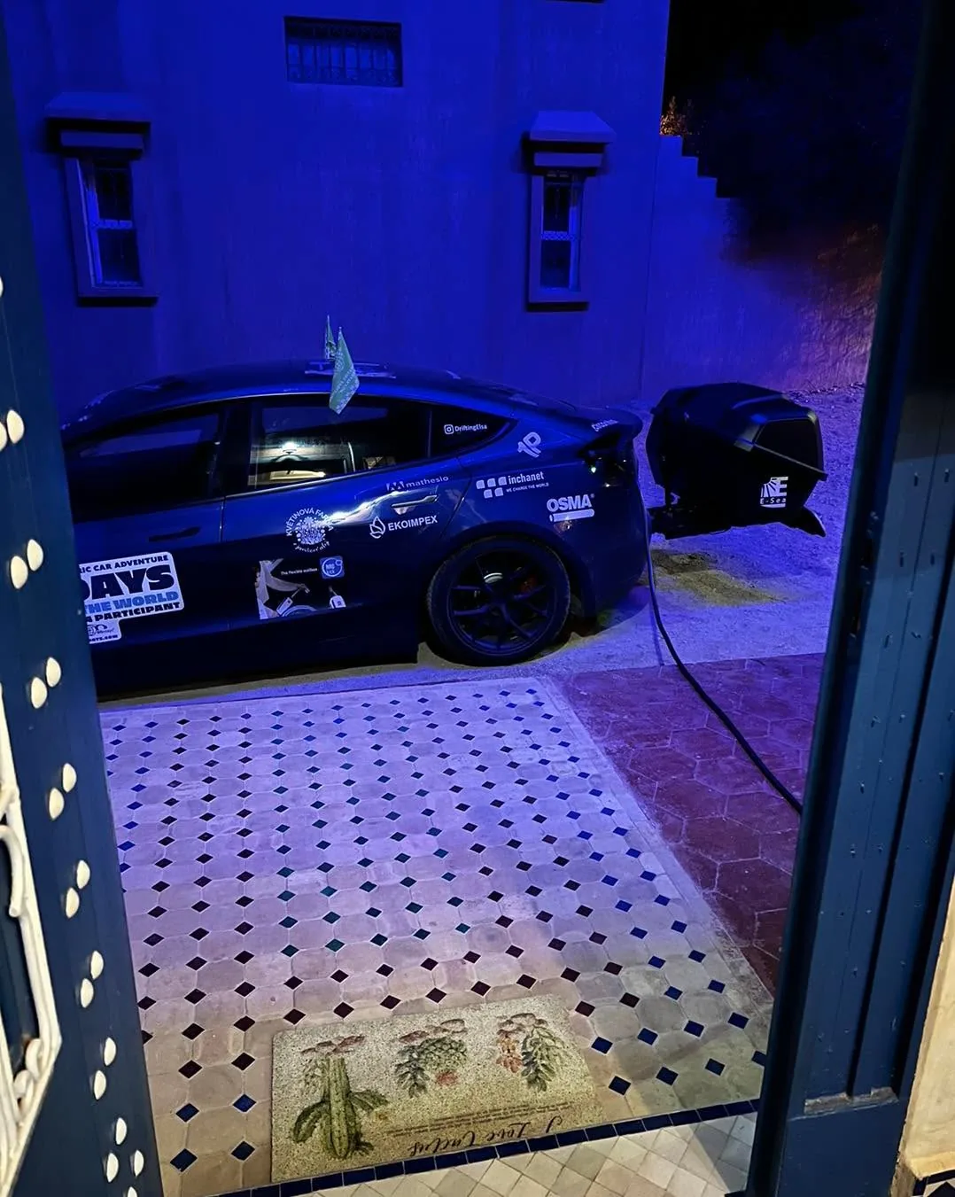 Elektro doplnění:⚡️😀 Btw. zase dobijime pomoci Portaboxu od Inchanet a ukazuje se, ze moznost nastavit ampery primo tlačítkem je dost užitečná funkce v odlehlých končinách. Muzu samozrejme i na displayi nasi Tesly, ale jsem si takto jistější nez někomu vyhodit jistič (což se nam opet podarilo, byt pri 16A😅). A pro zvídavé - cely hotel bezi asi na jedné fázi 30A. Rafael (organizátor celého 80edays) se totiz vsude okamzite ptá po rozvadeci a rovnou kouká, co tam maji, abysme jim nic neohrozili⚡️.
