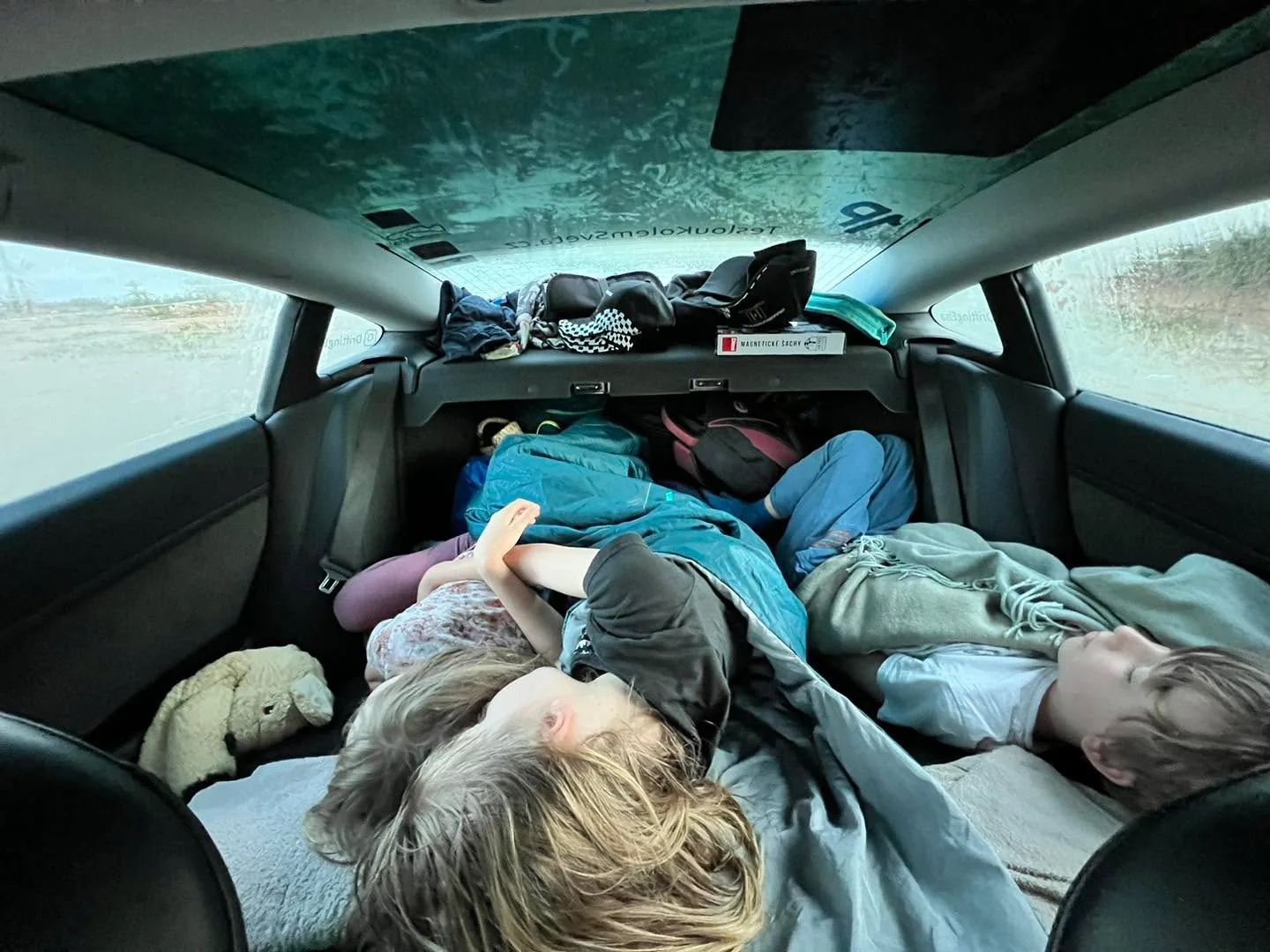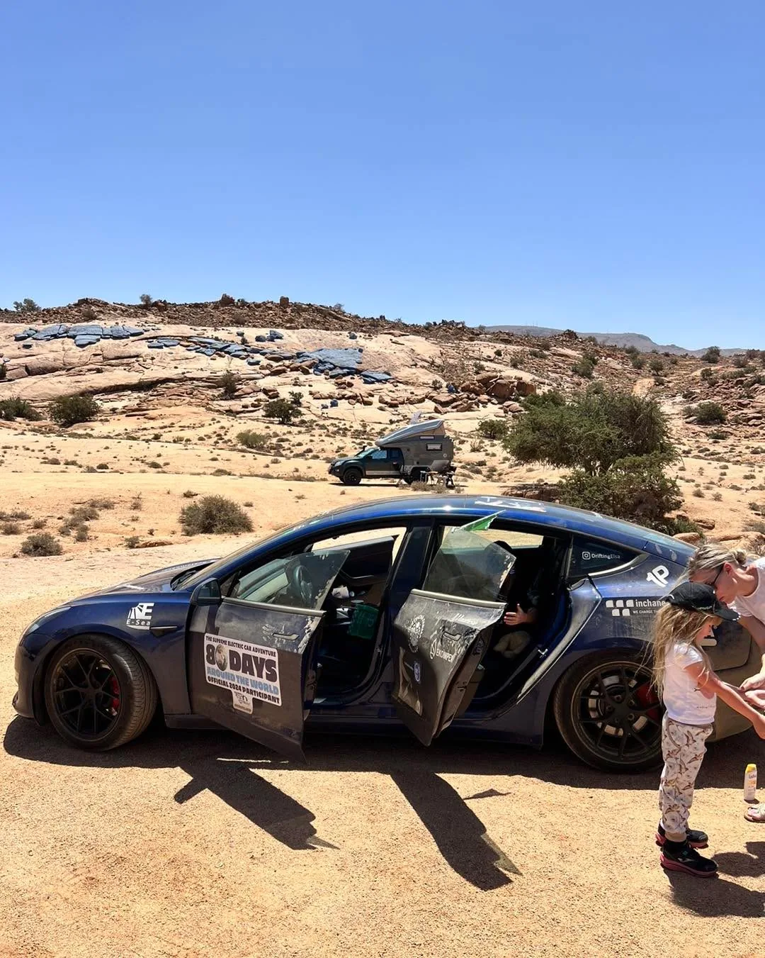 Z: Obdivuji svou ženu, že to zvládáme..🙏🏻✨ Přeci jen, když v noci dorazite do Marrakeshe a misto zaplaceneho ubytovani najdete plne obsazeny hotel a nemůžete se nikam dovolat (0:30), tak kupodivu posádka souhlasila se spaním v aute. Ano, 5 lidi včetně tašek v nejmenší Tesle..😅 Odměnou je plno jasných hvězd nad nami a probuzení bečením ovcí.. Ranní dobíjení (zdarma) v jednom z nejluxusnějších hotelů asi nemůže byt vetsi kontrast.. Následně prejezd do Agadiru, kde jsme odpoledne potrebovali vyjet hned do hor a 2 dny ted projizdime obrovske hory, strže, oázy a.. ..dnes v noci nam zase selhalo spani😳. Vysvětlení v PS nize.. Kazdopadne ve 2 hod rano objíždět kdesi v Africe náhodné kempy a bouchat na vrata jsem si do te chvíle neuměl predstavit🙈. Nasli jsme naštěstí na druhy pokus jiny kemp, kde rozvody vypadají funkční a meli nakonec i pekne pokoje. Nicmene ve 3 rano převážet rodinu kdesi v pustině a pak je jen přenášet na maly pokoj, kde jsme deti uložili na velkou postel a sami lehli na zem bylo jen takové adekvátní zakončení dne.. Jedine pozitivum bylo, ze jsem ve 3 rano asi vyfotil mléčnou dráhu nad nami na mobil🤩😇 (k tomu mame taky celou story, ale to zase jindy..) Kazdopadne jsou nektere dny intenzivní a ty zbyle jdou uplne mimo očekávaný rozsah..🤣 Za to Haničce neskutečně dekuji, ze to muzeme zazit vsichni společně!🙏🏻🙏🏻✨✨✨ Kazdy den se i v našich rozhovorech objevi “mracek”, ale kdyz si uvedomim, ze jsme kdesi v kempu v pustině, 5900km od domova a rano se Laura probere na posteli se zachvatem smíchu a vyptava se na vse kolem a pak snidame s berberem ve stanu, tak mam pocit, že se dotýkáme hvězd..✨✨✨