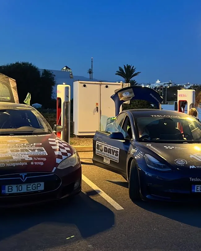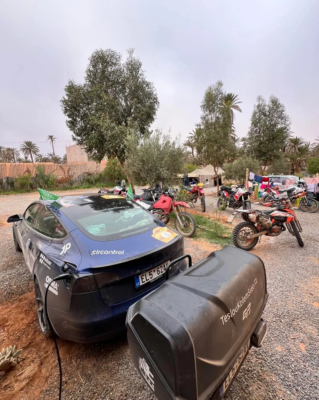 Zpátky do Afriky - to nejlepší nás ale čekalo: Z přístavu Tan-tan jsme jeli do Legzira a nedovolili nám tam dostatečně nabijet na dalsi úsek do Agadiru. Tzn. nase auto melo mírnou rezervu, Rafael vyjizdel s tim, že mu chybí 26 km. Jeli jsme extrémně úsporně (vypnuli jsme klimu i větrání) a jeli v kopcích jen 45-60. Dojeli jsme obě auta se spotřebou 11 kWh🤩. To jsme nikdo nevěřil, že je možné dosáhnout s plně naloženým naším Performance a ani se starým Modelem S!🤩🤩⚡️ (jeho auto ma najeto přes 600.000 km)