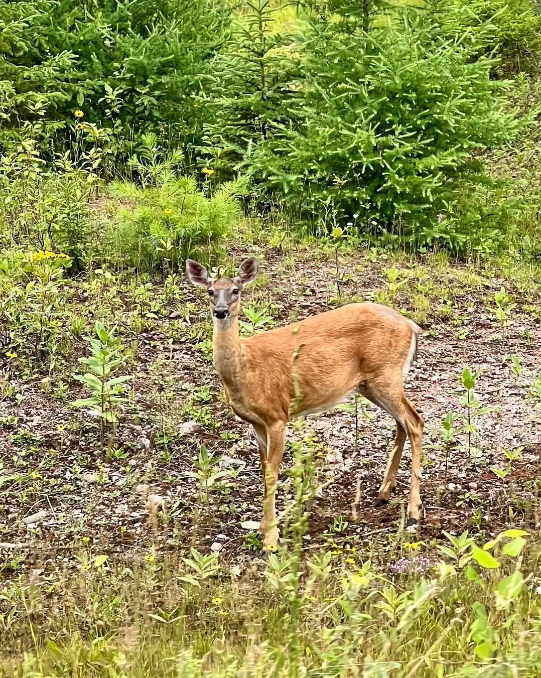 Na fotkách krome servisu přidávám záběry “z města”. Proste je tu jedna velká křižovatka, pak jedete 2 km lesem a objevi se servis😀. Nicmene ty nejvetsi budovy na fotkách jsou: centrum pro rodinu, hokejový stadion (pry hrajou světový pohár hokeje na rybnících), radnice/restaurace. Přerostlá srna a kamion nejlépe vystihují to, co tady potkáte častěji nez lidi. V noci jsme viděli ještě 4 losy a 2 zajíce na té 200 km silnici bez signálu😅.