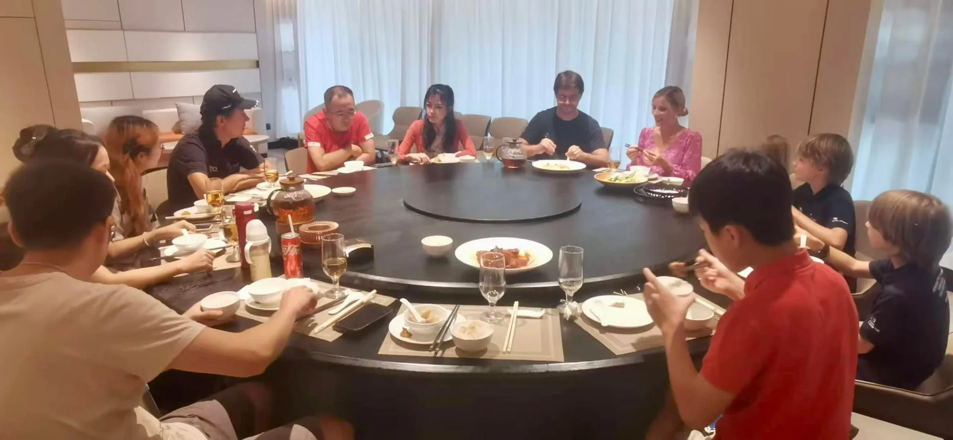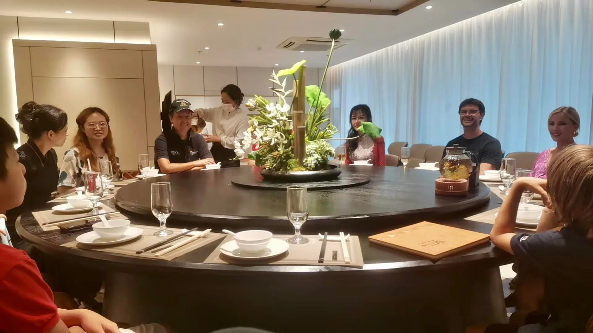 Přátelé jsou všude.. Hned po příjezdu do Číny jsme měli nabitý program. Navštívili jsme řadu firem. První z nich byla WJM (Weijiamei) s výrobou čehokoli silikonového a textilního. Zároveň i specializovaná na doplňky pro Teslu (Topfittesla) Mají pod sebou ještě několik dalších firem.. i spřátelených, které jsme navštívili další dny. Skvěle se nám věnoval majitel s dcerou i další z kanceláře. Na maximum jsme využili zázemí firmy 😅 (obě vázy u vstupu přežily 🤦♀️😂😇) Prohlídku celé firmy jsme zakončili společnou večeří 👍 v restauraci u přítele majitele. Takže od prvního čaje po kávu s vínem to byl gastronomický zážitek.
