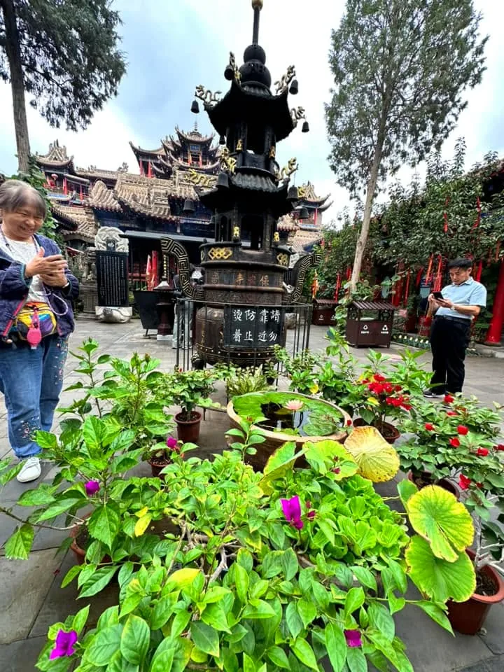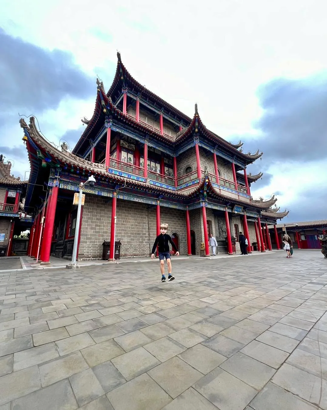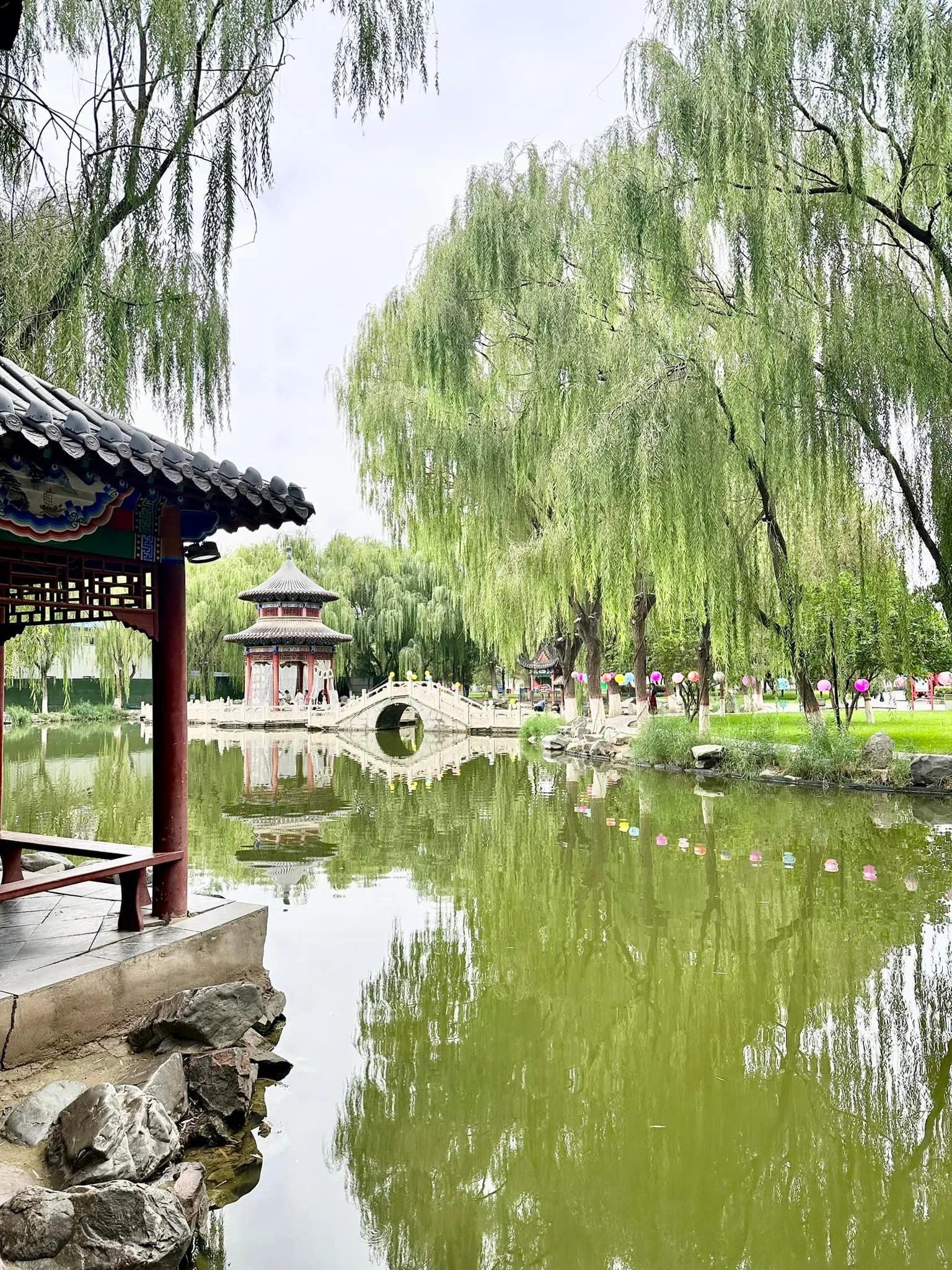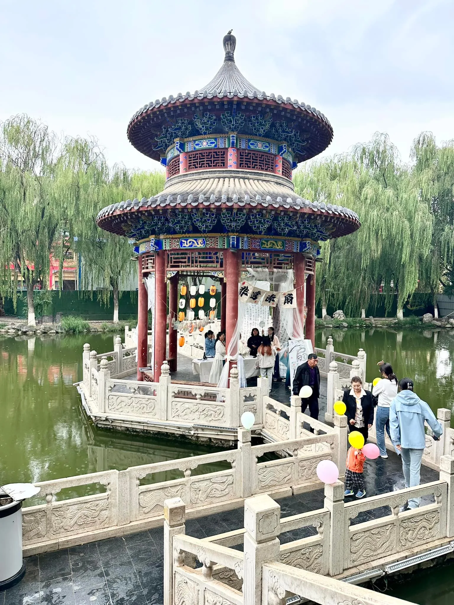To se takhle jdete zrelaxovat do chrámu Gaomiao obklopeného zahradou. Těšíte se, jak se zaparkujete v altánu na vodě, kam za vámi díky cik cak cestě, nemůžou žádní zlí duchové 😀 a v tom překvapení, stejný nápad mělo i hodně místních soudruhů a milých žen, co tady něco bujaře oslavovali 🙂 Děti nacpané extra nudlemi, už před vstupem do areálu klasicky stávkovaly, takže zvládly chrám, pak už i s mužem šly raději na skákací atrakce do města. Mě se s nadšením ujaly holky, co měly po zahradě různé tradiční aktivity.. 🙏😄