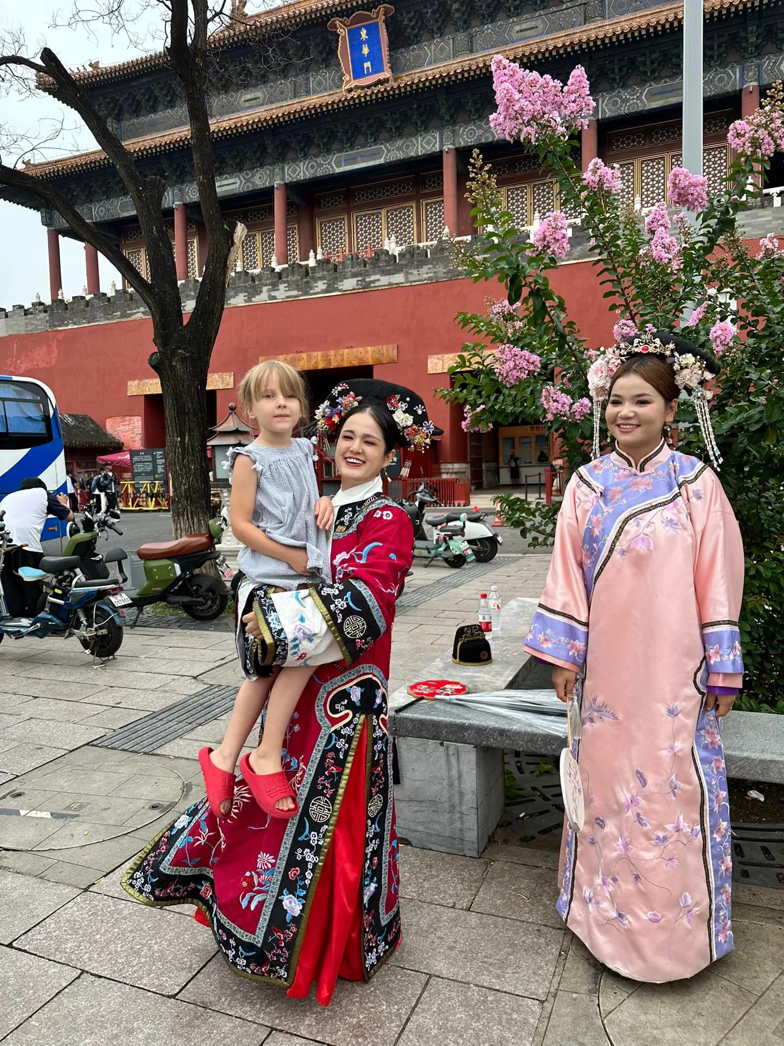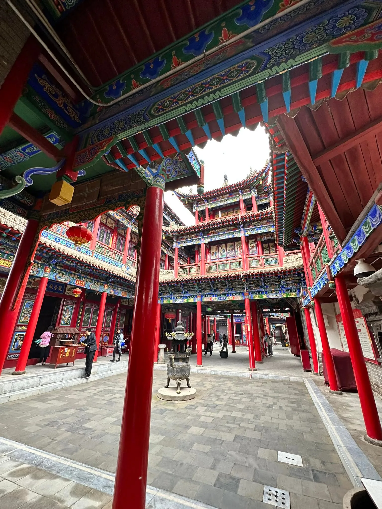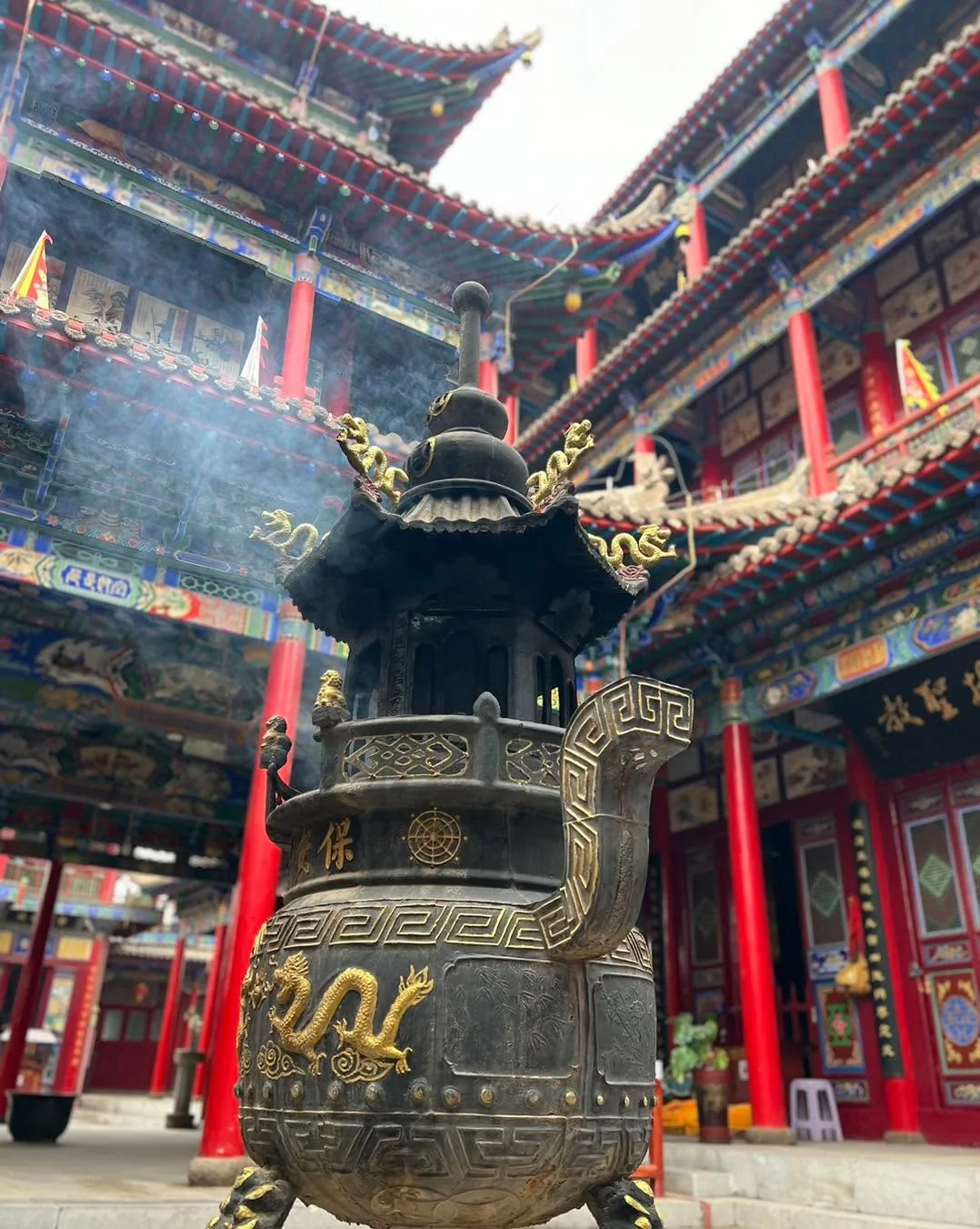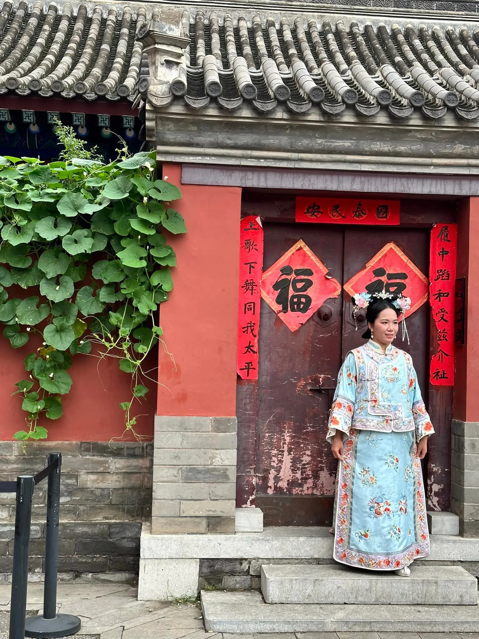 To se takhle jdete zrelaxovat do chrámu Gaomiao obklopeného zahradou. Těšíte se, jak se zaparkujete v altánu na vodě, kam za vámi díky cik cak cestě, nemůžou žádní zlí duchové 😀 a v tom překvapení, stejný nápad mělo i hodně místních soudruhů a milých žen, co tady něco bujaře oslavovali 🙂 Děti nacpané extra nudlemi, už před vstupem do areálu klasicky stávkovaly, takže zvládly chrám, pak už i s mužem šly raději na skákací atrakce do města. Mě se s nadšením ujaly holky, co měly po zahradě různé tradiční aktivity.. 🙏😄