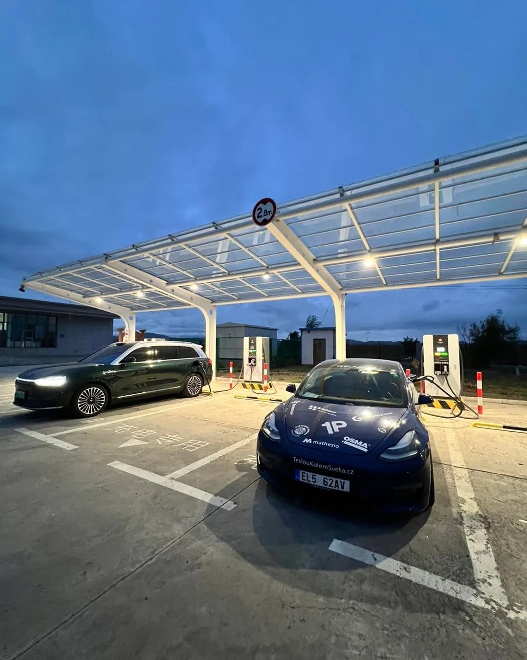 Jak dobijime v čínské poušti? Především s radostí!⚡️⚡️😁 Našel auto nabijí jen na neTesla nabijeckach, ale zatim nam vsechny DC fungovaly (teda akorat xpeng detekoval adapter a poslali nas jinam). Kazdopadne se pohybujeme nyni na severozápadě Ciny a zkouseli jsme i náhodně zastavit na dalnici a dost často tam meli nejake DC. Ted se blizime k useku, kde 300 km nema být žádné nabijeni, ale podle jedné appky uz i tam přidali dalsi nabíječky👍🏻⚡️. Kazdopadne na infrastruktuře asi dost makají, protoze kolem je jinak již jejich klasicky venkov. Buď je nekde průmysl a vetsi mesto a nebo male domečky a kolem kukuřice a jinak nic. A tady teda hlavne uz jen pisek..🙈😄.