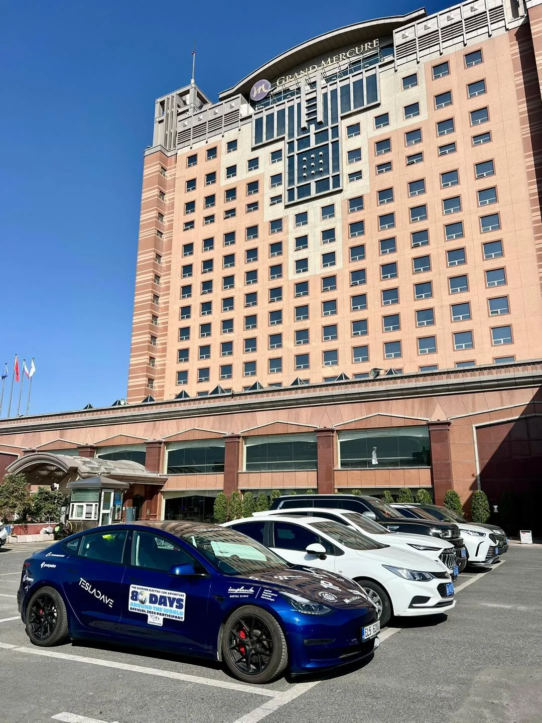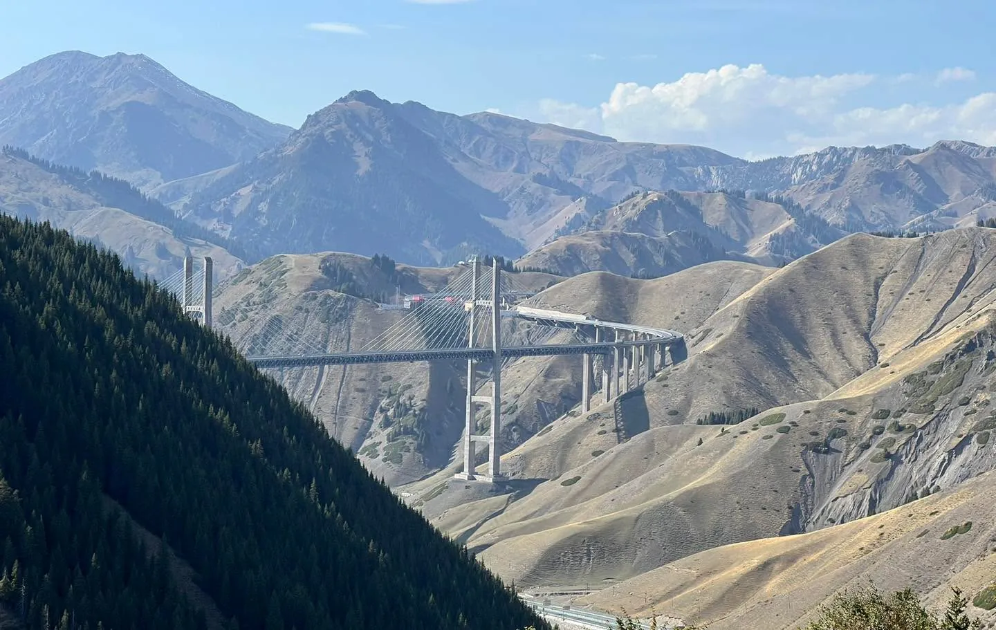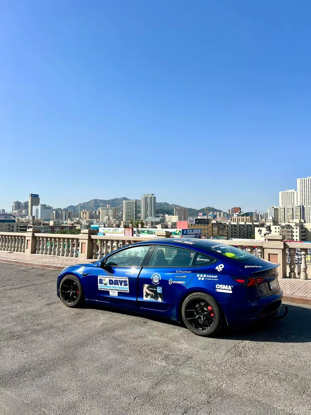 Servis a dalsi cesta na západ! Vse vypadalo zalité sluncem, protoze nalakovaný naraznik vypadal lepe a s přesnějším odstínem než po minule opravě (Btw. uhodnete nekdo, kolikatou výměnu a lak ma za sebou?😅). Auto nam i nalestili a uvnitr vycistili, takze jsme se pri výjezdu cítili zase jako lidi😄. I nam opravili par drobnosti, o které jsem poprosil, takze vse dopadlo super a nadšeně jsme se vyfotili s ředitelem servisu a hlavním technikem👍🏻. Auto jsem nadšeně vyfotil i pred hotelem a s výhledem na Urumqi🤩. A pri odchodu z hotelu jsme viděli i místní svatbu🙂. Pak ale za městem na dalnici jsem slyšel divne zvuky a jeden spodni kryt pred predni nápravou začal škrtat o asfalt. Nevime, jestli uz byl napraskly nebo je to po opravě. Kazdopadne shodou náhod v dalším městě byl majitel servisu stary kamarad vsech kolem #80edays, tak jsme to dnes radeji zkontrolovali na zdviži a bylo to přinejmenším rozpacite..🫤 Kazdopadne jejich sikovny technik si pohrál s par šrouby a spojkami a snad je to ted mnohem lepsi nez bylo a snad to vydrží ten Kazachstan🙈🙏🏻.