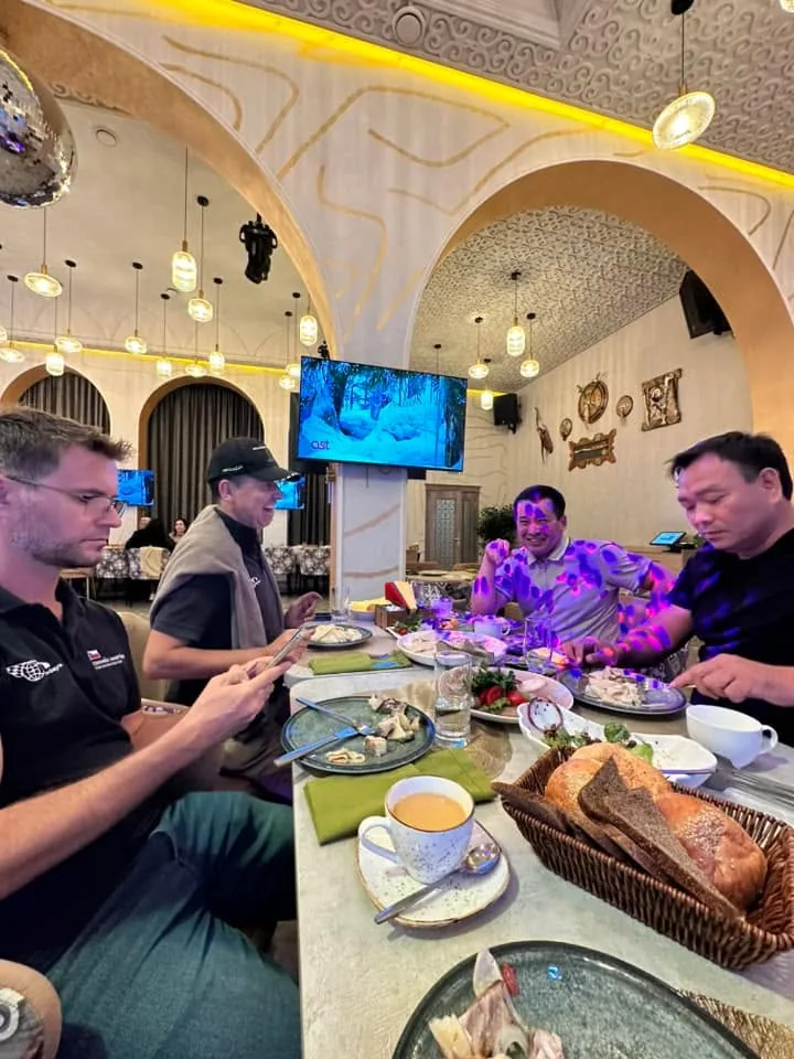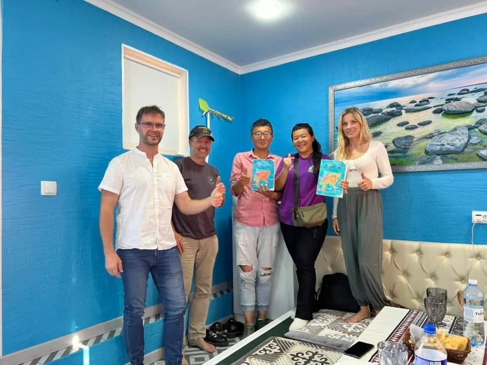 Lidé: O Fanyuhu a Glorii jsme věděli od Ciny.. Dokonce jsem v různých zemích pozadal 2 lidi o propojeni, takze jsem vedel, ze to jednou prijde😉. Dnes rano nam Aktan v Aktau poslal náhodnou fotku z ulice s jejich autem. Takze jsem jim hned napsal a poslal nasi polohu a oni prijeli za nami, protoze nase auta uz jsou na moři.. Za jejich cestou kolem světa je silnější příběh, nez jsem cekal. Vlastne jsou 2: