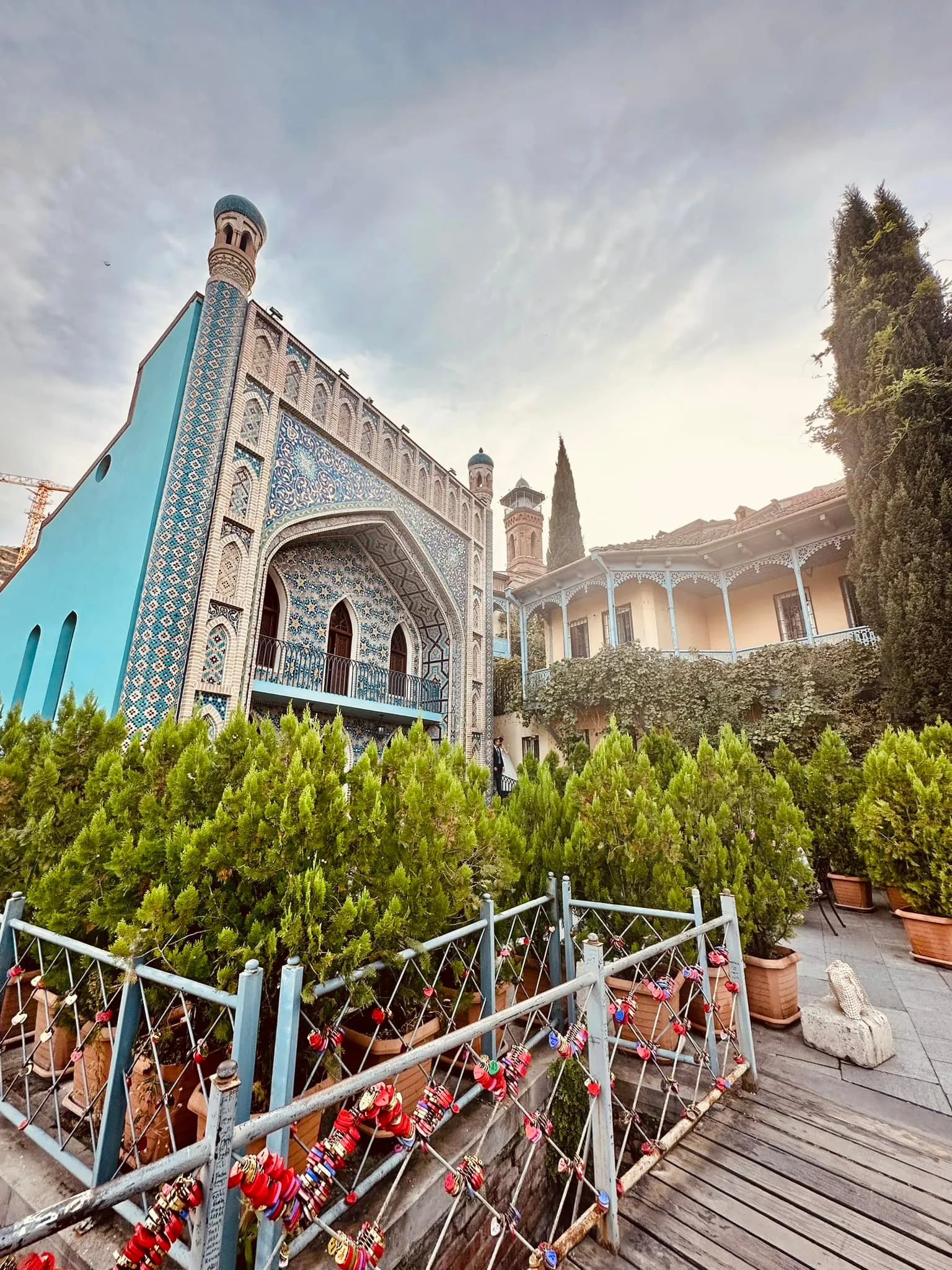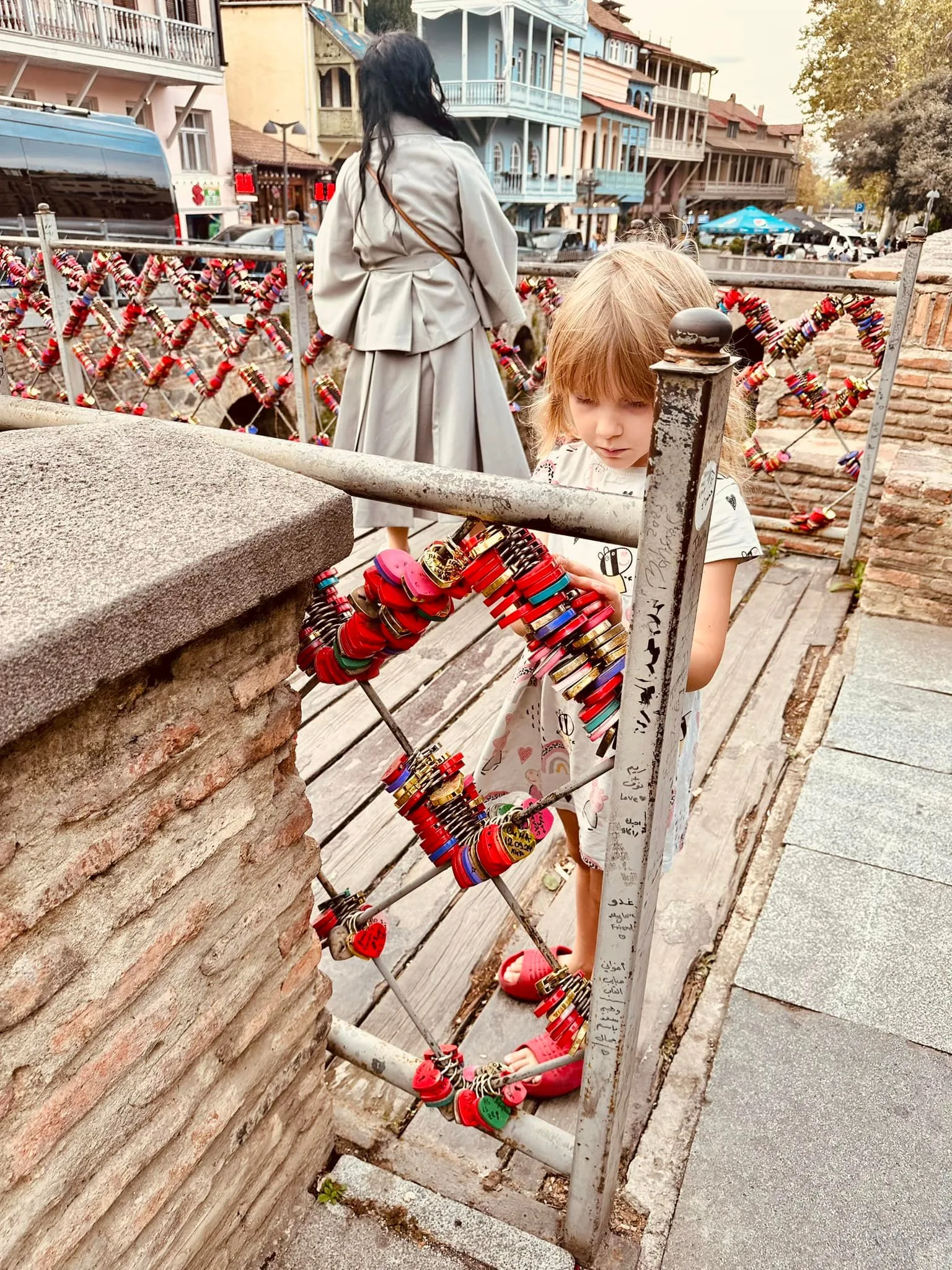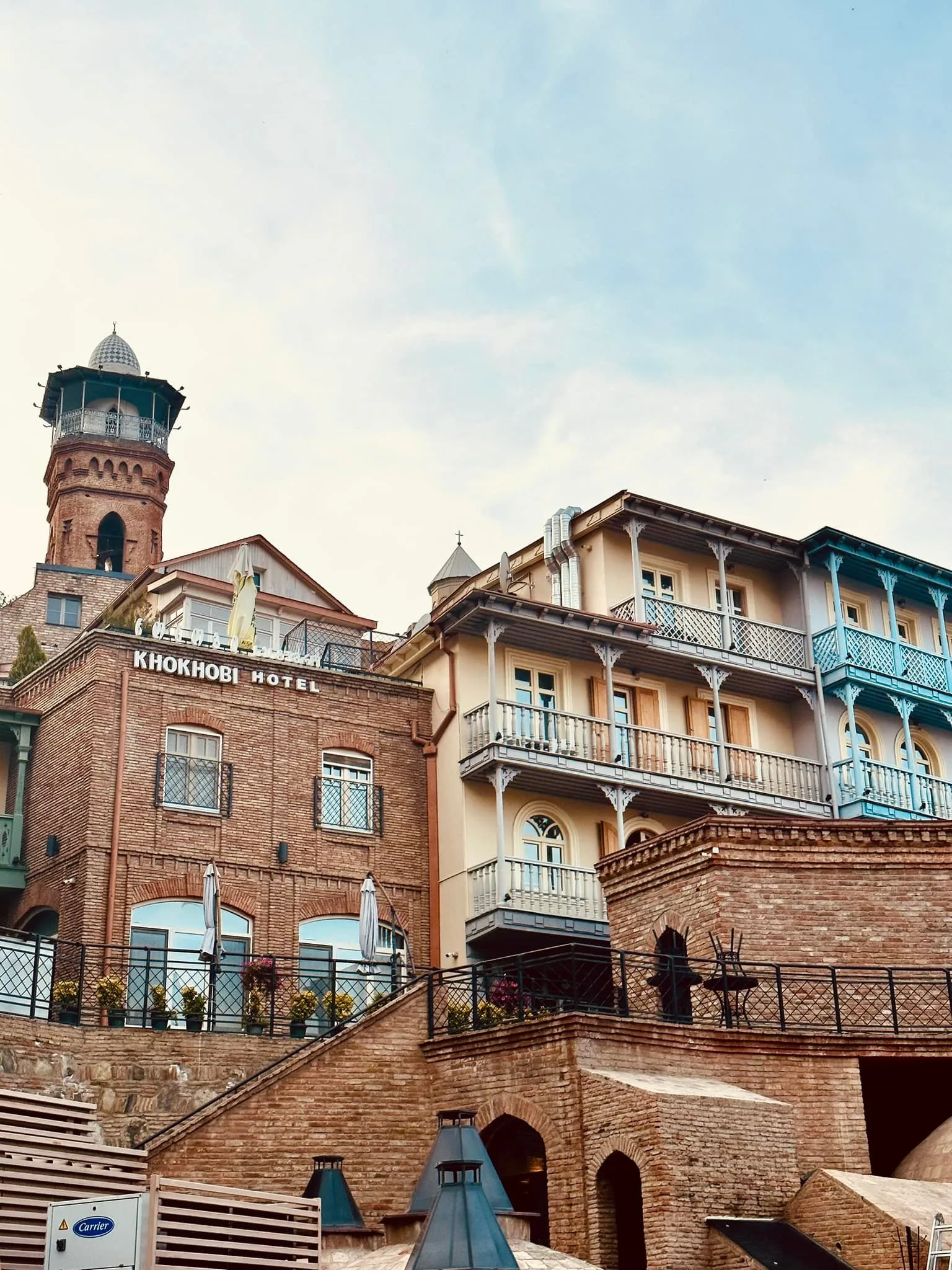 Navštívili jsme staré město s úzkými uličkami, dlážděné kočičími hlavami. Přes staré město vedla kdysi hedvábná stezka. Domy jsou převážně dřevěné s vyřezávanými předsazenými balkóny podobně jako v Baku. V lázeňské čtvrti Abanotubani se nachází sirné lázně ze 17. století a opět krásně zdobená mešita nad vodními kaskádami. Moc hezké mosty staré i moderní a lanovka propojují jednotlivé části města..