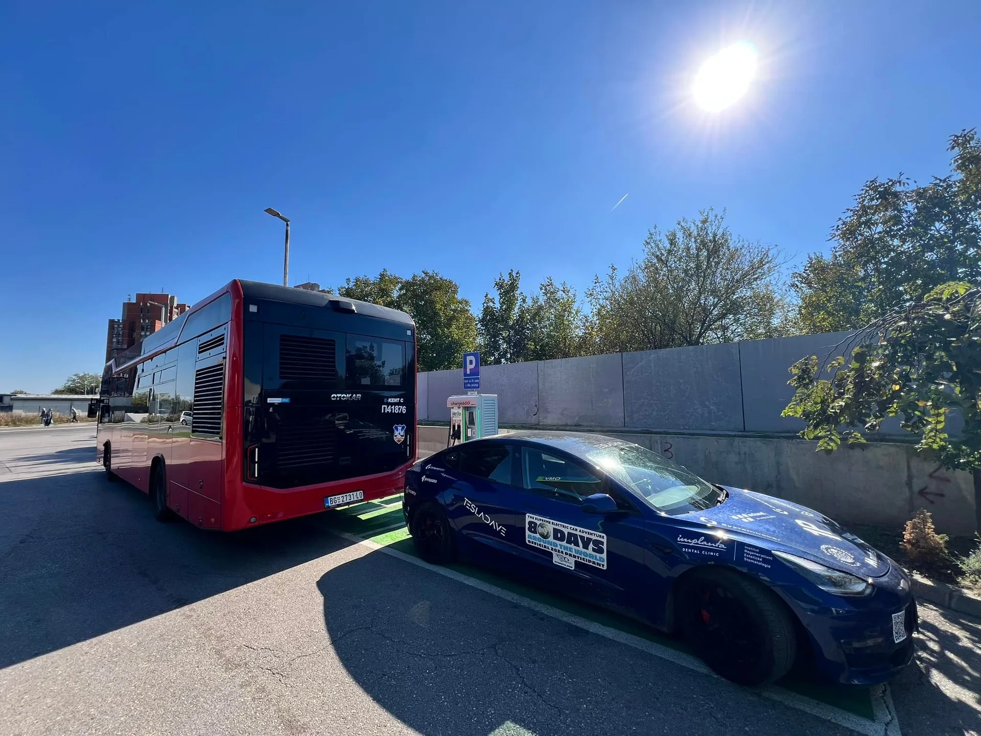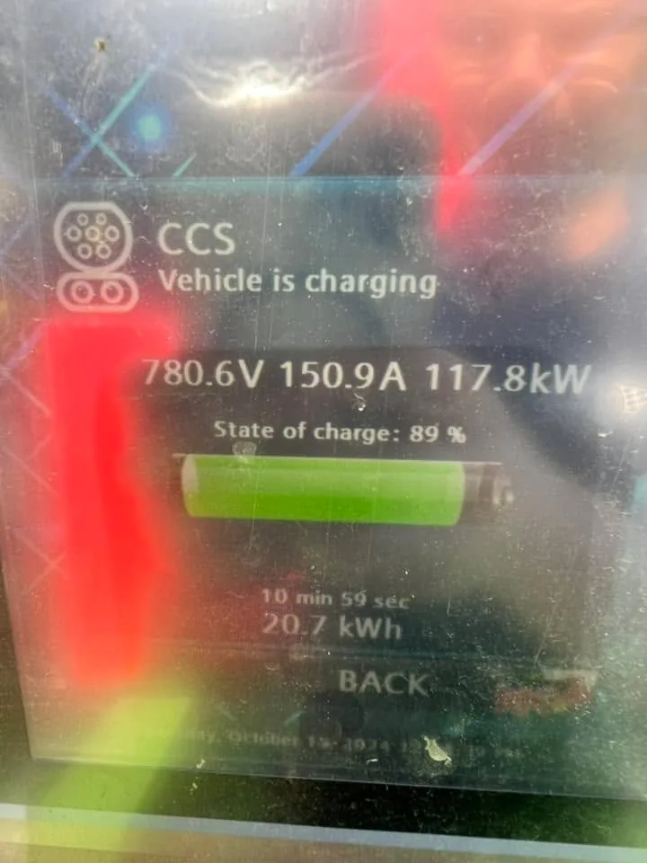Nabijeni⚡️ - prijizdime na benzínku na okraji Bělehradu a rikam: ten blbec autobus beztak stojí pred nabijeckou🙈🙈 On stal samozrejme spravne, ze jsme mohli take nabijet a hlavne jsme poprvé potkali pri našem nabijeni autobus👍🏻. Takze Bělehrad překvapil a po Číně, kde jsme takto potkali kamion je to prijemne prekvapeni!👍🏻⚡️⚡️ PS: i pri 90% baterky mu to tam teklo porad plným výkonem nabíječky - 120kW😳. A byl postaven na 800V architektuře.