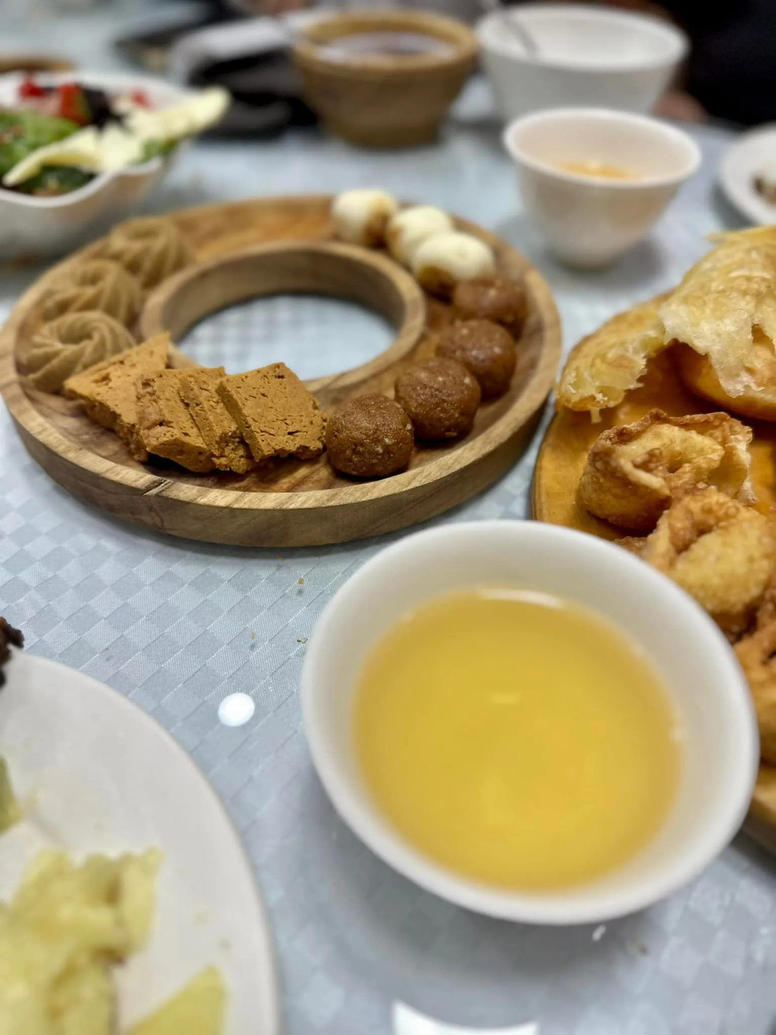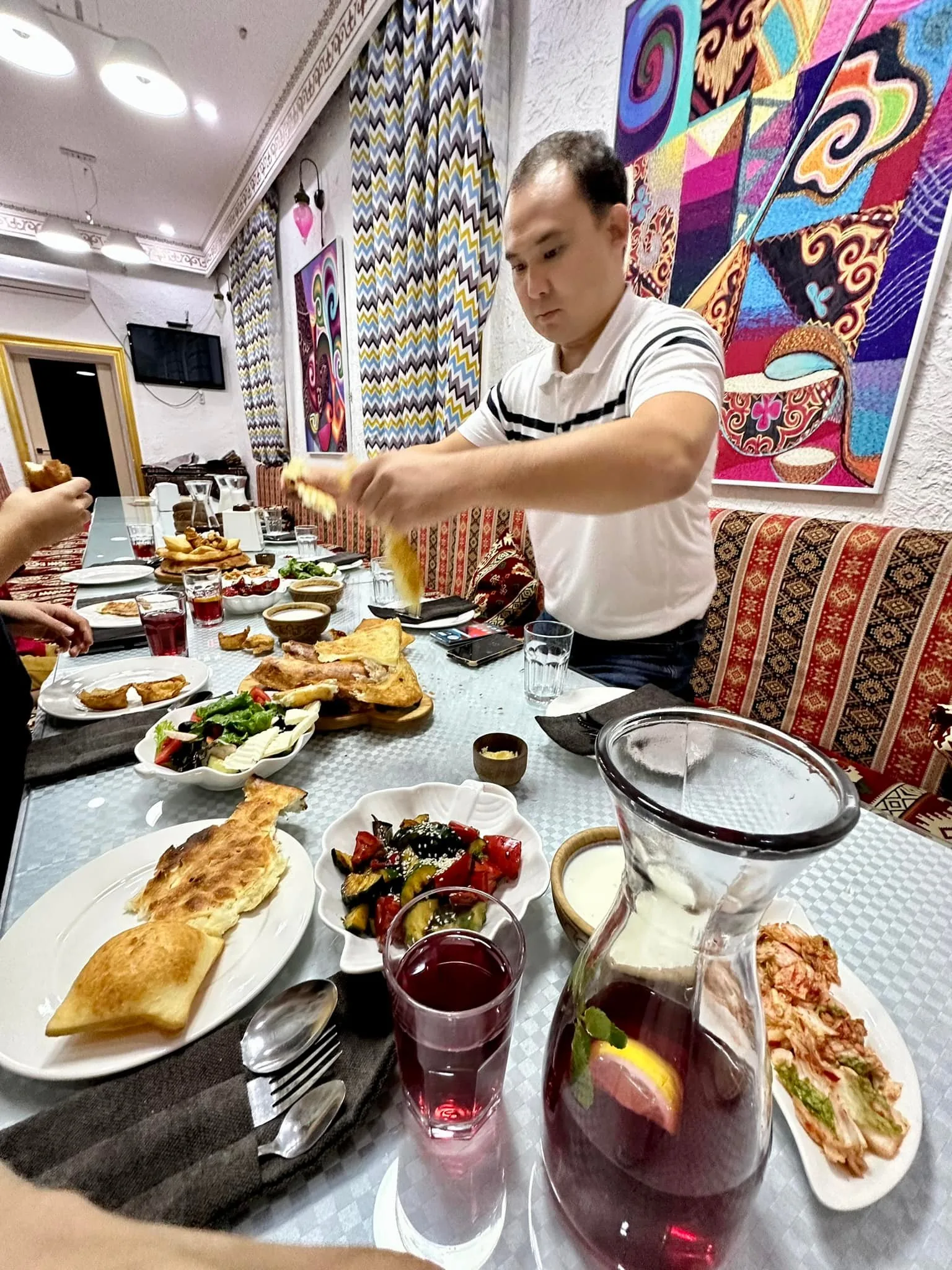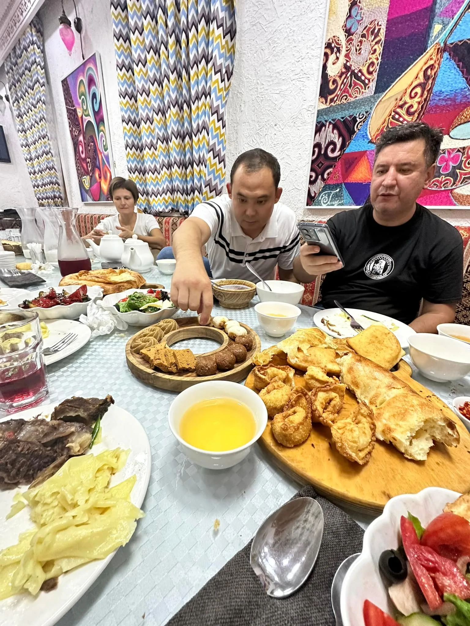 Pohostinnost Kazachstanců je vyhlášená i tady jsme byli pozváni na místní speciality.. u některých jsme se neměli raději ptát, z čeho jsou 🙈😀